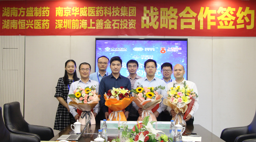 9月26日,南京華威醫藥科技集團有限公司與湖南方盛制藥股份有限公司、深圳前海上善金石投資管理有限公司、湖南恒興醫藥科技有限公司在南京舉行全面戰略合作簽約儀式。