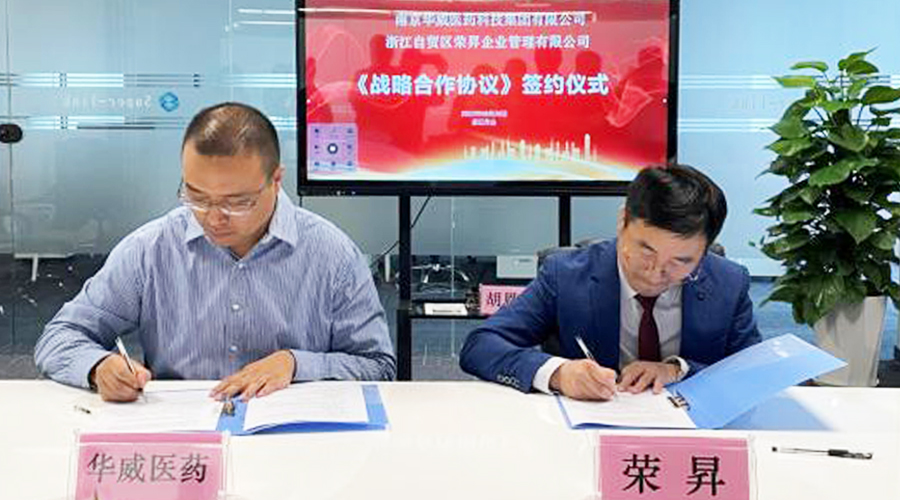 2022年8月26日,在多位領導與專家的共同見證下,浙江自貿區榮昇企業管理有限公司與南京華威醫藥科技集團有限公司在浙江省舟山普陀國際健康產業中心舉行了戰略合作簽約儀式。榮昇董事長趙洪昇、總經理謝生榮,百花醫藥輪值總經理荊韜、黃龍生物副總經理許毅等共同出席了簽約儀式。