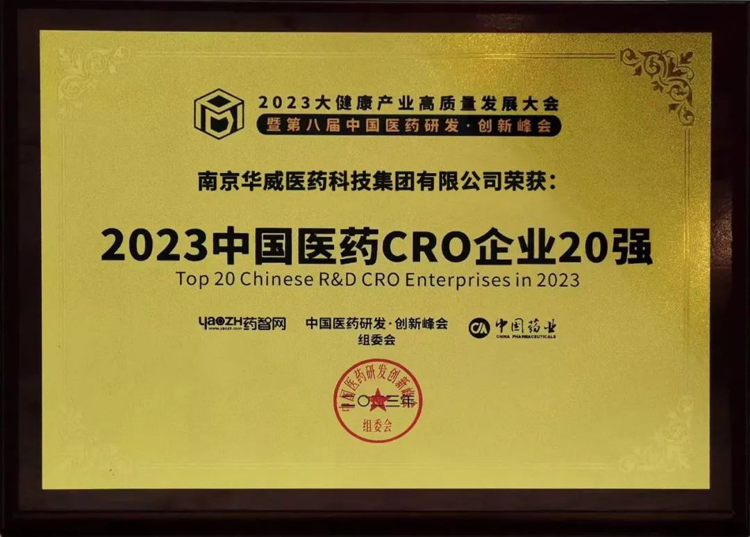 6月16日,2023大健康產業高質量發展大會暨第八屆中國醫藥研發?創新峰會耀世啟幕,讓醫藥行業萬眾矚目的“2023中國藥品研發實力系列榜單”隆重揭曉。華威醫藥憑借自身實力再次成功入選熱門榜單之一的《2023中國醫藥CRO企業20強》。值得關注的是,這是華威醫藥連續多年獲此殊榮。